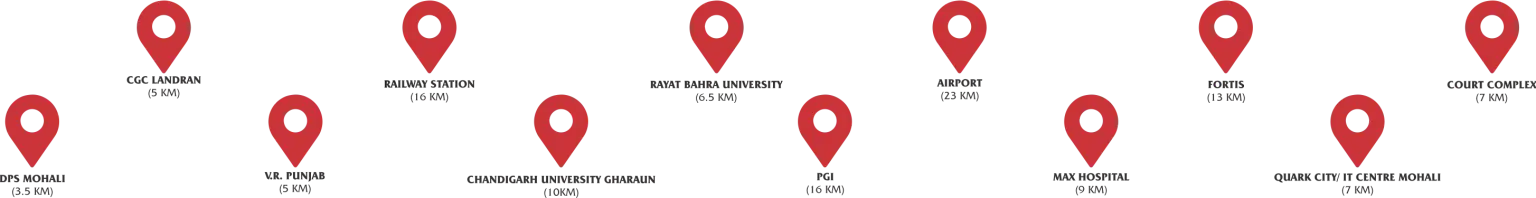 Yes, reputed institutions like DPS Mohali, CGC Landran, Chandigarh University, and hospitals like Fortis & Max Mohali are within 10–15 minutes.